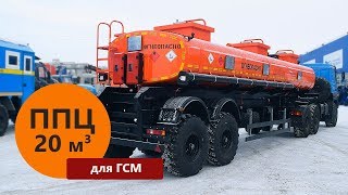 объем цистерны 20 м³, 1 секция, 2-осный, 1-скатная ошиновка, оси HJ (аналог BPW), рессорно-балансирная подвеска HJ (аналог BPW), отсек управления с насосом УЗПМ СВН-80, шины 425/85R21, прямое продольное сечение, чемоданное поперечное сечение, высота ССУ 1430 мм, ДОПОГ