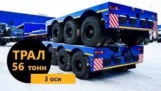 грузоподъемность 55 т., 2-скатная ошиновка, оси BPW (оригинал), рессорно-балансирная подвеска BPW (оригинал), без коников/стоек, шины 12.00/R20, длина погрузочной платформы 12000 мм, высота ССУ 1630 мм, механические трапы