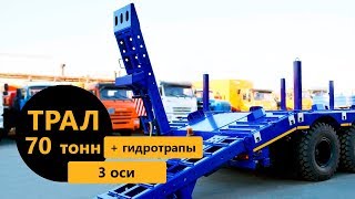 грузоподъемность 70 т., 2-скатная ошиновка, оси BPW (оригинал), рессорно-балансирная подвеска BPW (оригинал), без коников/стоек, шины 14.00R20, длина погрузочной платформы 11110 мм, высота ССУ 1500 мм, гидротрапы, автономная гидростанция, двухсекционное опорное устройство